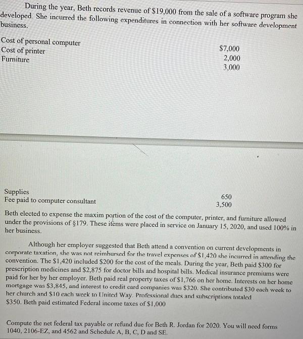 Solved Tax Return 2 Beth R Jordan Lives At 2322 Skyview Chegg Com